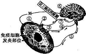 图表示人体某器官由于感染出现炎症时有关调节的相互关系模式图,请据图回答:(1)图中的脑垂体分泌的促肾上腺皮质激素的靶器官M是,它分泌的某种激素是一种免疫抑制剂,并作