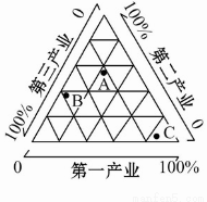 图中A、B、C各点分别代表区域发展不同时期的产业结构特征。从区域发展的过程来看,其正确的顺序是