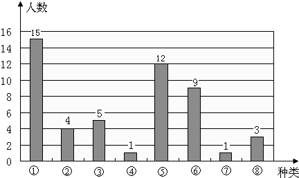 小红针对八种蔬菜,对他们班做了“你最喜欢吃哪一种蔬菜”的调查.并记录数据如下表: 全班同学最喜欢吃的蔬菜统计图