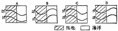 下列四幅图中,表示北半球一月份等温线分布的是( )
