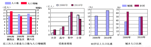 ①我国人口增长速度加快? ②人口老龄化加重? ③居民受教育程度提高? ④城镇人口比重下降