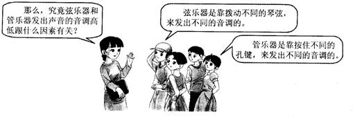 音乐会上各种乐器为我们奏出了美妙的音乐.回来之后,小超和小菲都知道了乐器改变发出声音音调的方法,可是,究竟是什么因素造成了它们发出声音的音调发生了改变?请你就图中老师