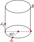 有种蚂蚁是白蚁的天敌,现在有一根高3米,截面半径为20厘米的圆柱形木柱,一只白蚁幼虫,停在上底面B处,另有甲,乙两只蚂蚁分别停在A 1 处和离地面高10厘米的A 2 处(如图),如果两只蚂蚁的爬行速度都是0.1厘米/秒,那么甲,乙两 蚁爬到B处吃掉白蚁幼虫需要的最短时间分别是甲蚁______秒,乙蚁______秒.(答案写成整数) |