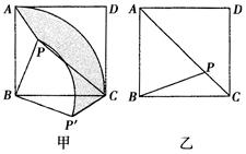 已知:如图,点P是正方形ABCD内的一点,连结PA,PB,PC.(1)如图甲,将△PAB绕点B顺时针旋转90°到△的位置.①设AB的长为a,PB的长为b(b<a),求△PAB旋转到△的过