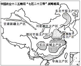 中国农业十二五“七区二十三带”战略格局图,完成下列问题。小题1:东北平原主产区农业发展的有利条件是()A.人口众多,劳动力丰富B.光热充足,复种指数高C.人均