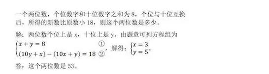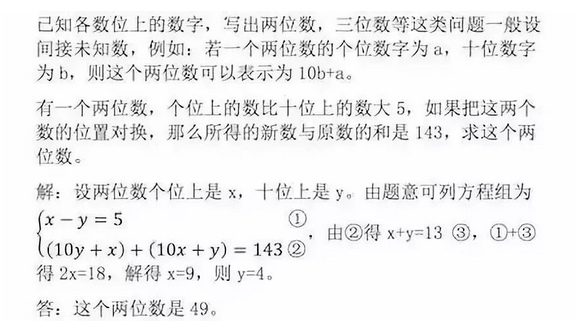 奥鹏学习网【aopeng123.cn】整理了关于2023年中考数学知识点:数字问题,希望对考生们有所帮助,仅供参考。数字问题知识梳理已知各数位上的数字,写出两位数,三位数等这类问题一般设间接未知数,例如:若一个两位数的个位数字为a,十位数字为b,则这个两位数可以表示为10b+a。典型例题: